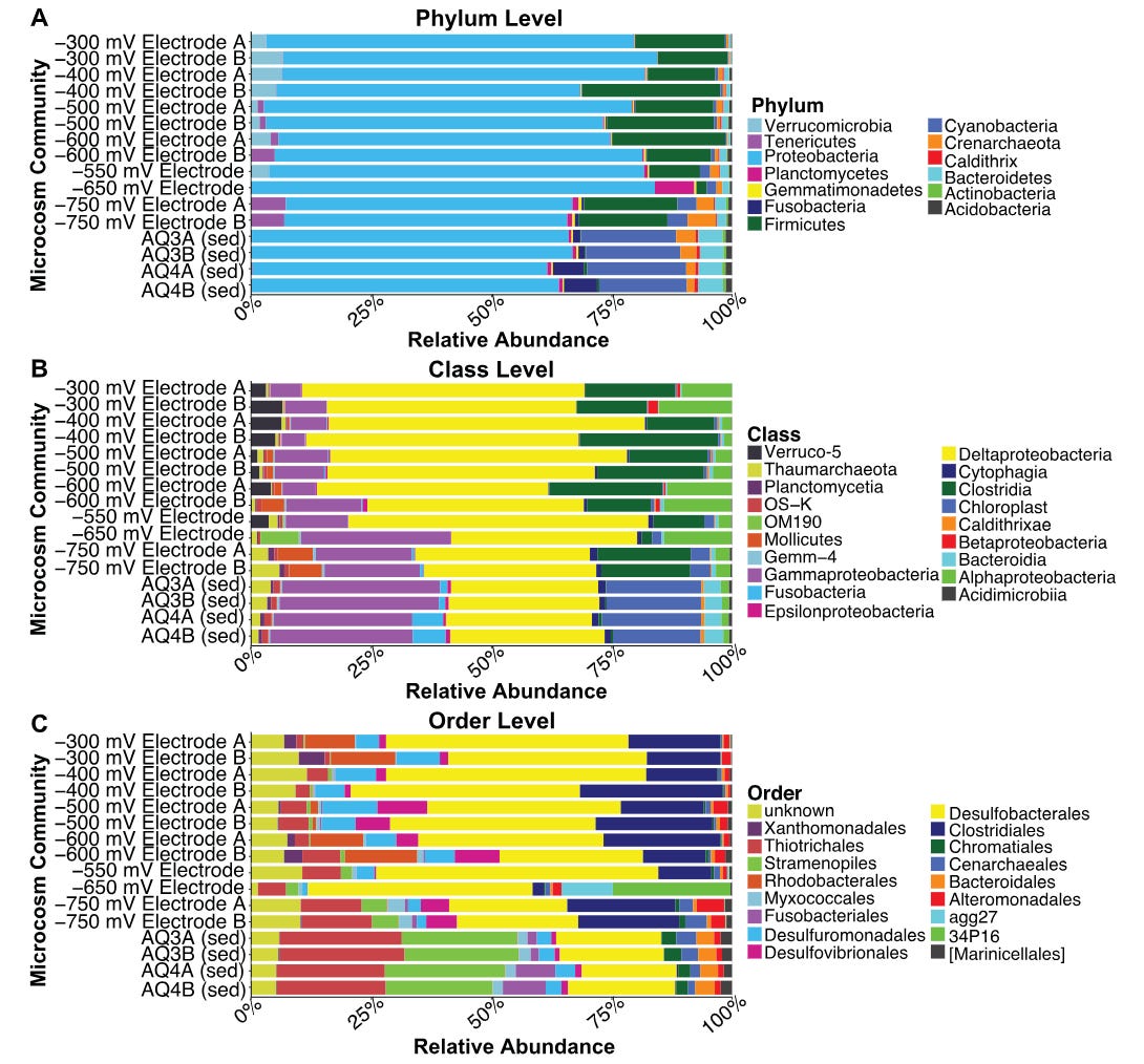 Lam, B. R., Rowe, A. R., & Nealson, K. H. (2018). Variation in electrode redox potential selects for different microorganisms under cathodic current flow from electrodes in marine sediments. Environmental microbiology, 20(6), 2270–2287.